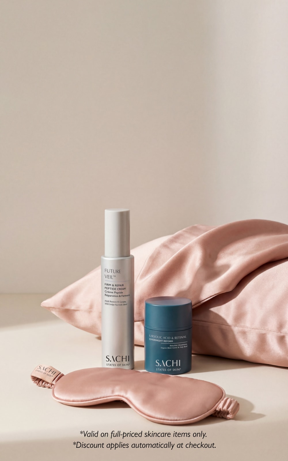 With over 17 years as a Cosmetic Formulator and Aesthetician, Farah built Sachi Skin on one simple truth; skin doesn’t have a type, it has a state. Growing up between ancient Ayurvedic traditions and modern dermal science, coupled with her own skincare journey of navigating hyperpigmentation and hormonal challenges, she has curated formulas that bridge both worlds - advanced dermal science and healing Ayurvedic botanicals. The result? Transformative skincare that evolves with you.