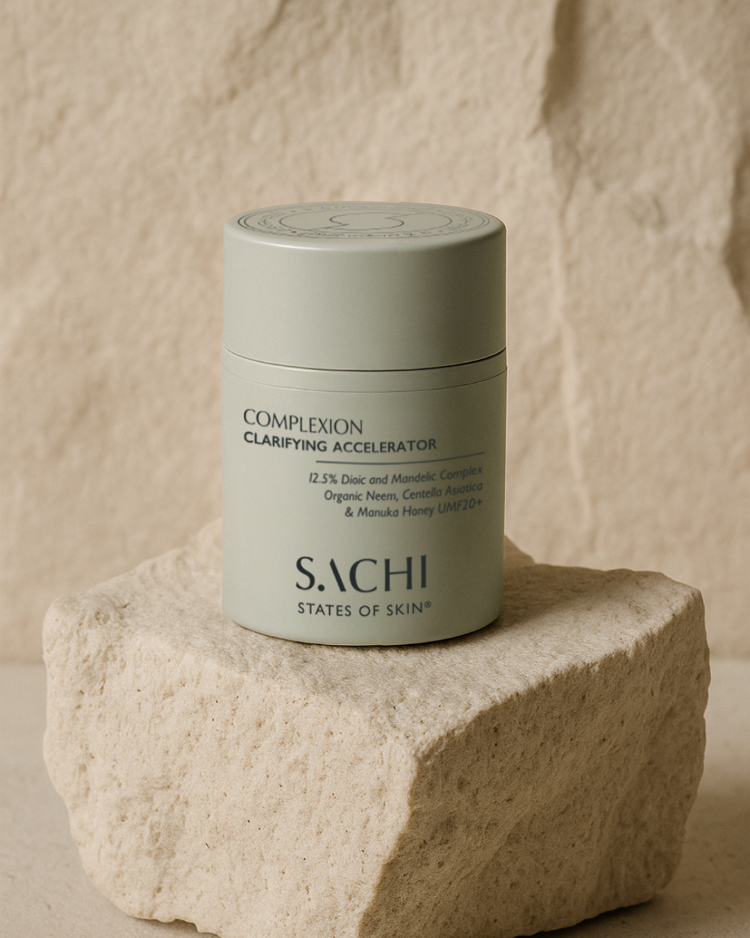 Ayurvedic botanicals, including Manuka Honey UMF 20+, Glycerin, and Centella Asiatica, hydrate and replenish the skin barrier by combating the drying effects of exfoliation.