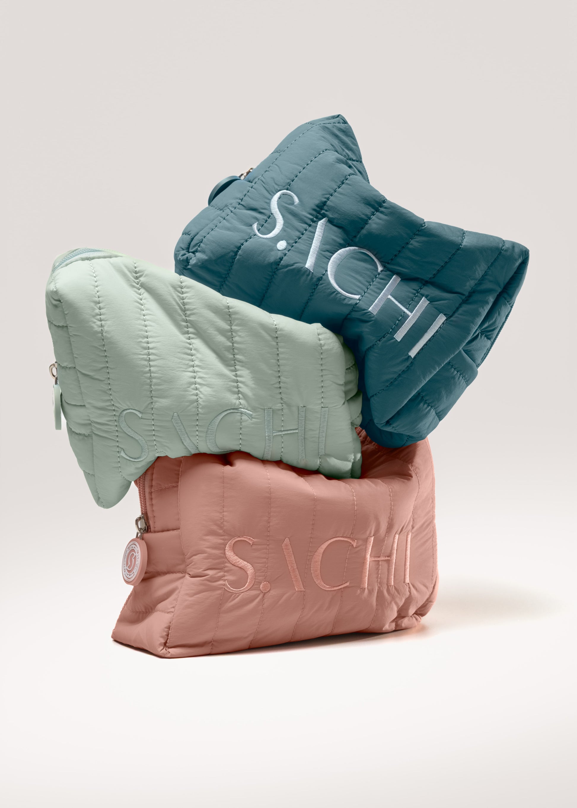 This beautifully soft, slouchy quilted pouch is made from durable, water-resistant, wipe clean fabric. Softly padded to help protect your daily skin and cosmetic essentials, perfectly sized to fit all you need, AM to PM.