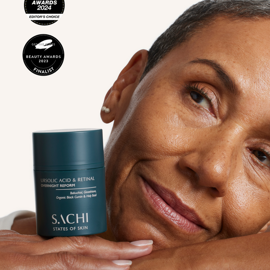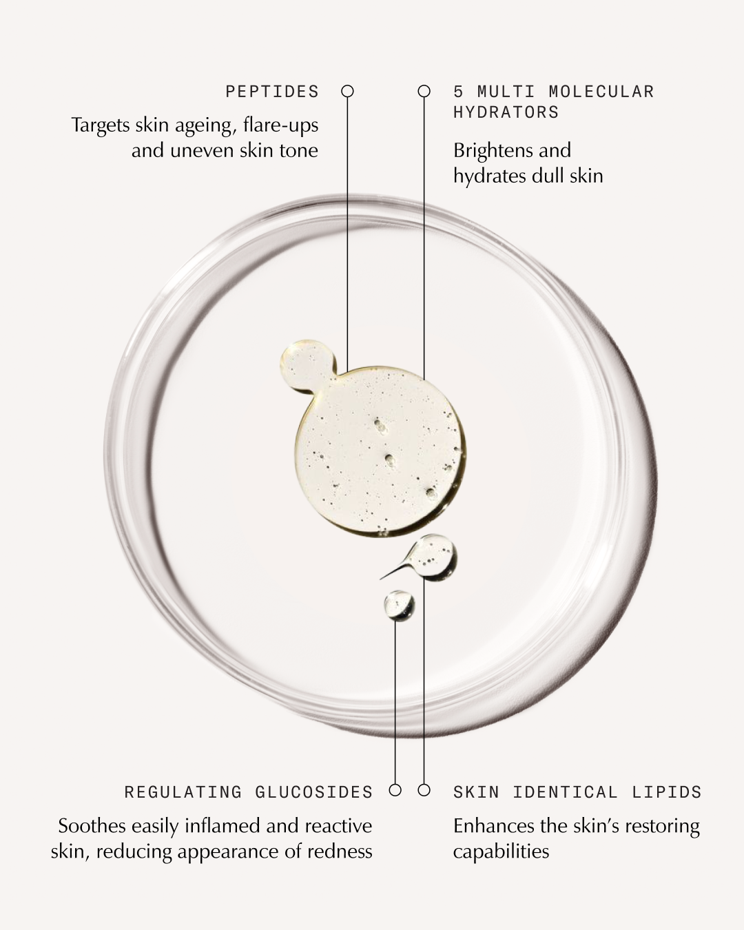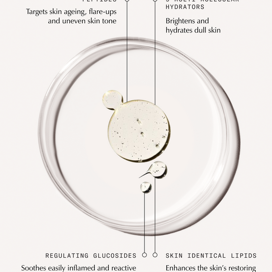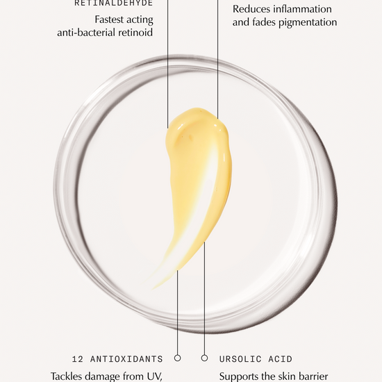 Harnessing a powerful proprietary blend of encapsulated Retinaldehyde, patented Liposomal Ursolic Acid, a restorative Tripeptide, and a 10.5% Ayurvedic Bioflavonoid Repair Complex with peptides, this advanced duo helps reinforce the skin’s natural recovery process. Enriched with an Ayurvedic botanical blend and twelve potent antioxidants, it helps improve the appearance of fine lines, uneven
