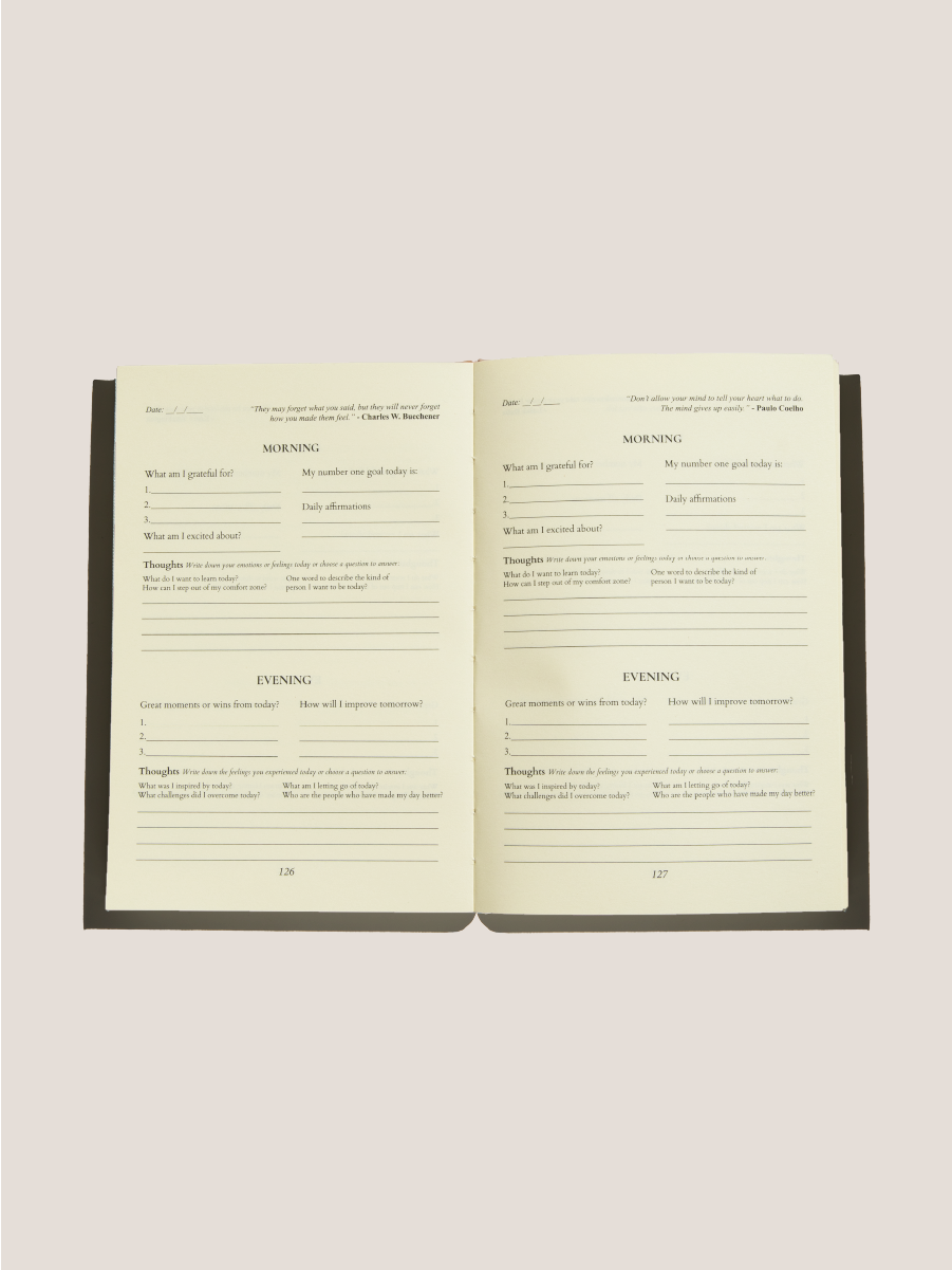 A six-month guide of gratitude, positivity, mindfulness and personal growth with actionable steps to help establish your focus and gear your mindset towards consistently experiencing better days. This daily journal is a testament to our belief that beauty truly is a state of mind, and that a good mental and emotional state is just as important as skincare.