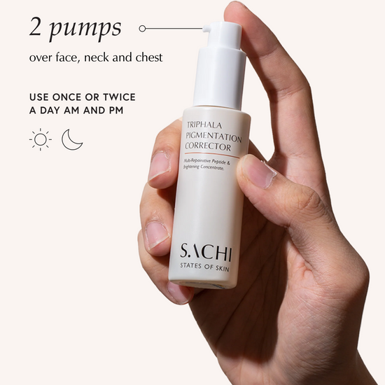 Composed of three Ayurvedic superfruits, Triphala works to diminish the appearance of hyperpigmentation, sun damage, fade dark spots, and improve yellowish skin whilst preventing the breakdown of Hyaluronic Acid in the skin, promoting a visible and lasting glow. Amlahown to have high levels of antioxidant activity via Vitamin C, Tannins, Polyphenols, Ellagic Acid, Amla regulates melanin production in the skin, reducing and preventing age spots.