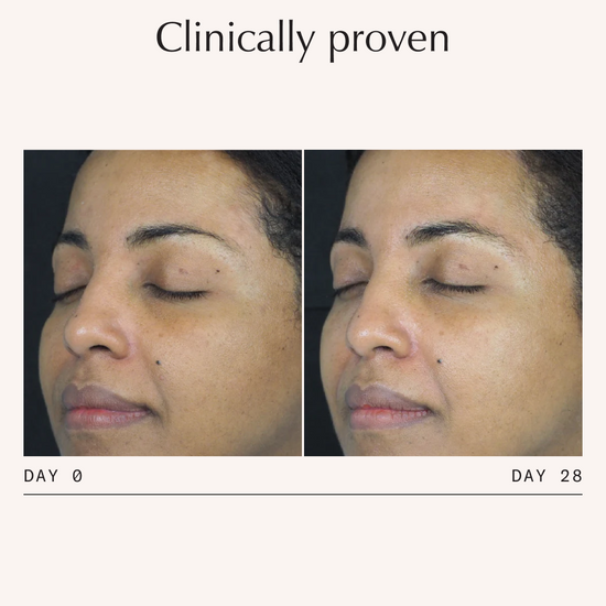 *Efficacy test conducted on 15 volunteers with x2 daily application for 28 days (4 volunteers dropped out because of Covid, leaving 11 tested on the final scoring day. Clinical scoring performed before application and at 28 days).*Please note that results will vary for each person depending upon the type of hyperpigmentation, skin color, age and many other factors.